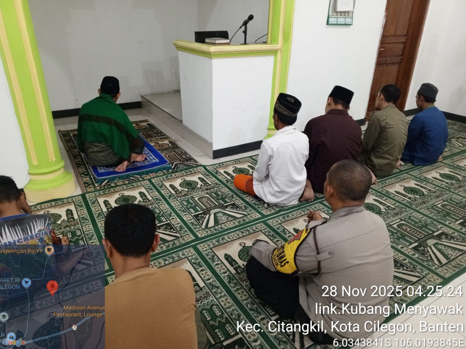 Cilegon - Dalam Rangka Implementasi Program Kapolda Banten Yaitu Sholat Jum’at Keliling Dan Berjama’ah Serta Memakmurkan Masjid Bhabinkamtibmas Polsek Ciwandan Polres Cilegon Polda Banten Sholat Berjama’ah dan Bersilaturahmi Bersama masyarakat sebagai upaya meningkatkan Ukhuwah Islamiyah dalam menjalin silaturahmi dan membangun komunikasi yang baik,Jum’at (28/11/2025).