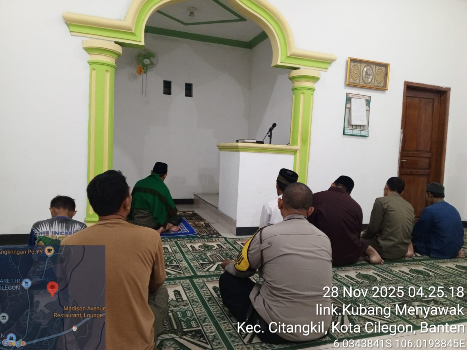 Cilegon - Dalam Rangka Implementasi Program Kapolda Banten Yaitu Sholat Jum’at Keliling Dan Berjama’ah Serta Memakmurkan Masjid Bhabinkamtibmas Polsek Ciwandan Polres Cilegon Polda Banten Sholat Berjama’ah dan Bersilaturahmi Bersama masyarakat sebagai upaya meningkatkan Ukhuwah Islamiyah dalam menjalin silaturahmi dan membangun komunikasi yang baik,Jum’at (28/11/2025).