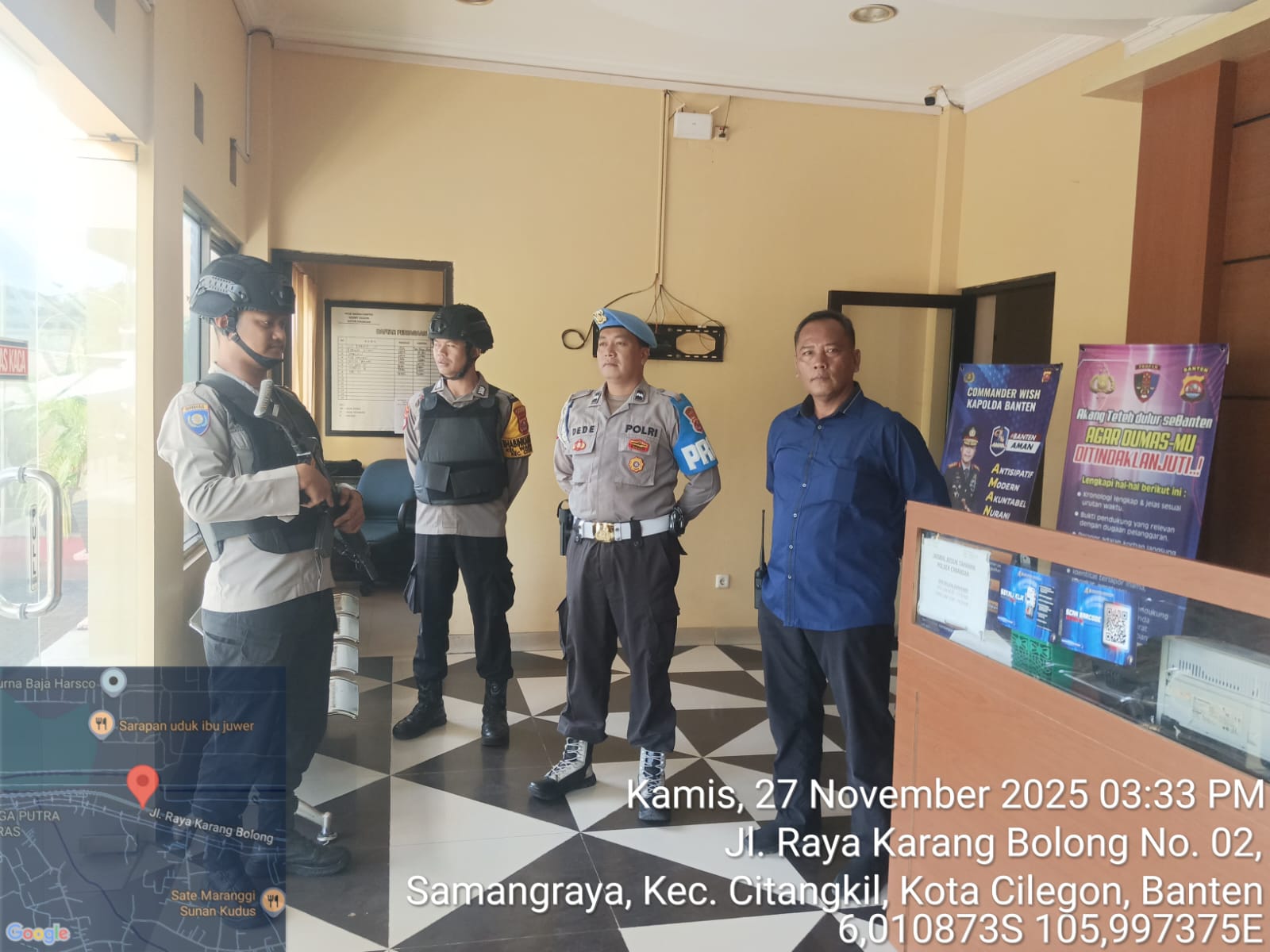 Cilegon - Guna mengantisipasi adanya potensi ancaman dan gangguan terhadap keamanan kantor maupun keselamatan personel piket jaga, Personil Polsek Ciwandan Polres Cilegon Polda Banten selalu tingkatkan kesiapsiagaan dan kewaspadaan dengan rutin menggelar kegiatan Sistem Pengamanan Mako (Sispam Mako), Sabtu (29/11/2025).