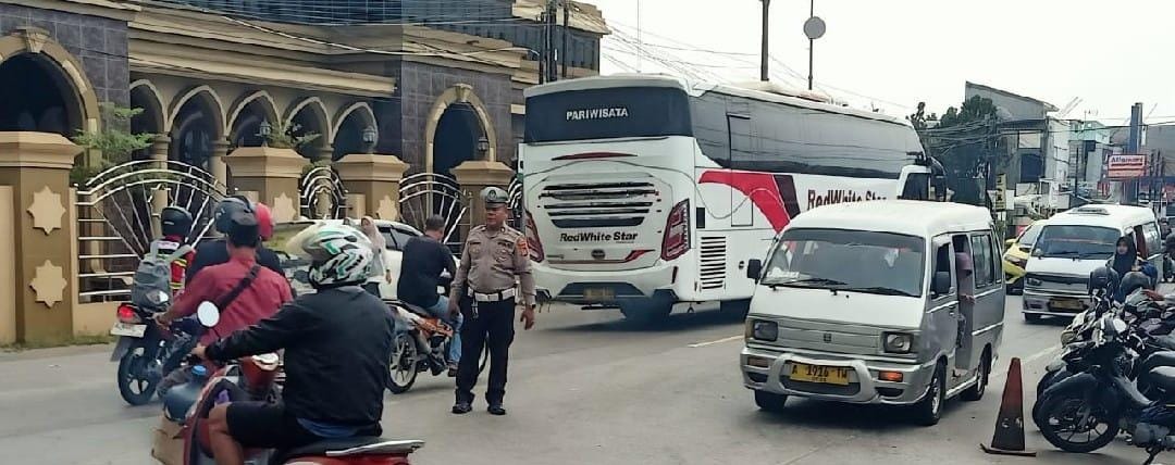 Lancarkan Arus Wisata Personil Polsek Anyar Lakukan Pengaturan Lalu Lintas di Jalur Anyar - Cinangka