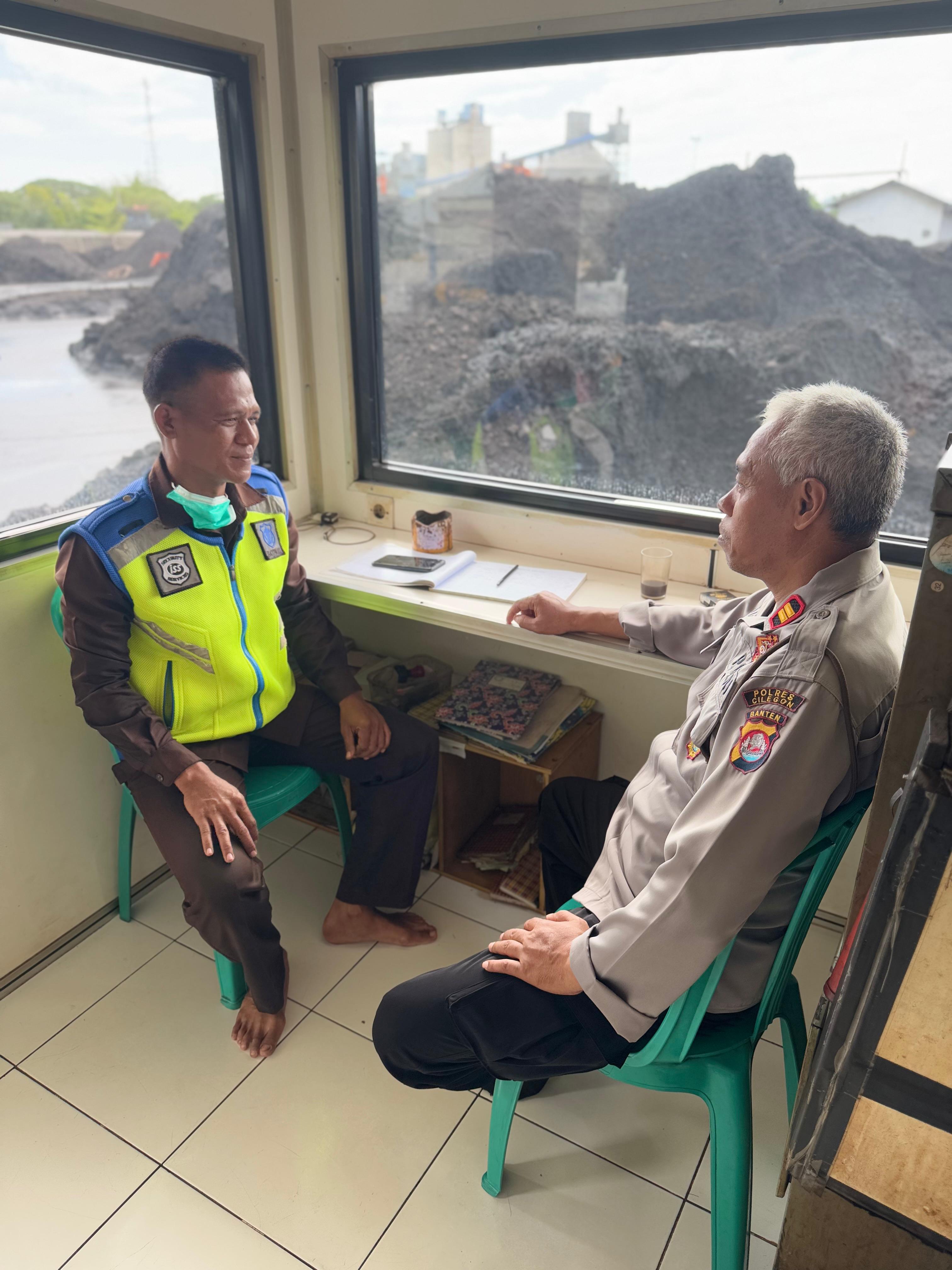 Kapolres Cilegon Polda Banten AKBP Martua Raja Taripar Laut Melalui Kapolsek Kskp Banten Polres Cilegon Polda Banten AKP Fredo Leonard Mengatakan Personil Polsek Kskp Banten Rutin menyambangi anggota Security dan memberikan himbauan agar para anggota Security bisa melaksanakan tugas menjaga keamanan di lingkungan Kawasan Pelabuhan.