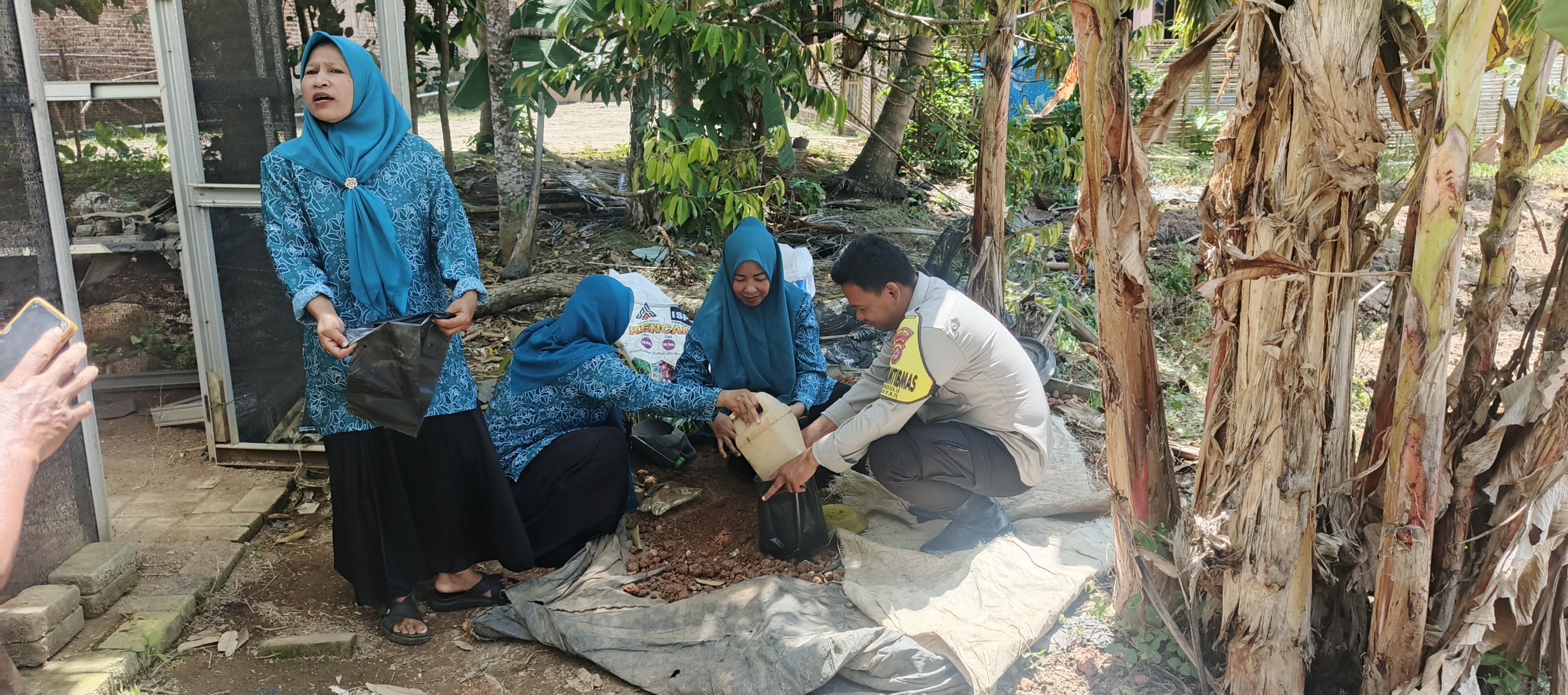 Cilegon - Bhabinkamtibmas Polsek Anyar Polres Cilegon Polda Banten Desa Bandulu menghadiri dan mengikuti kegiatan PKK Desa Bandulu dalam rangka pelaksanaan Program Pekarangan Pangan Lestari (P2L) yang dilaksanakan oleh Kelompok Wanita Tani (KWT) Desa Bandulu.  Senin (01/12)