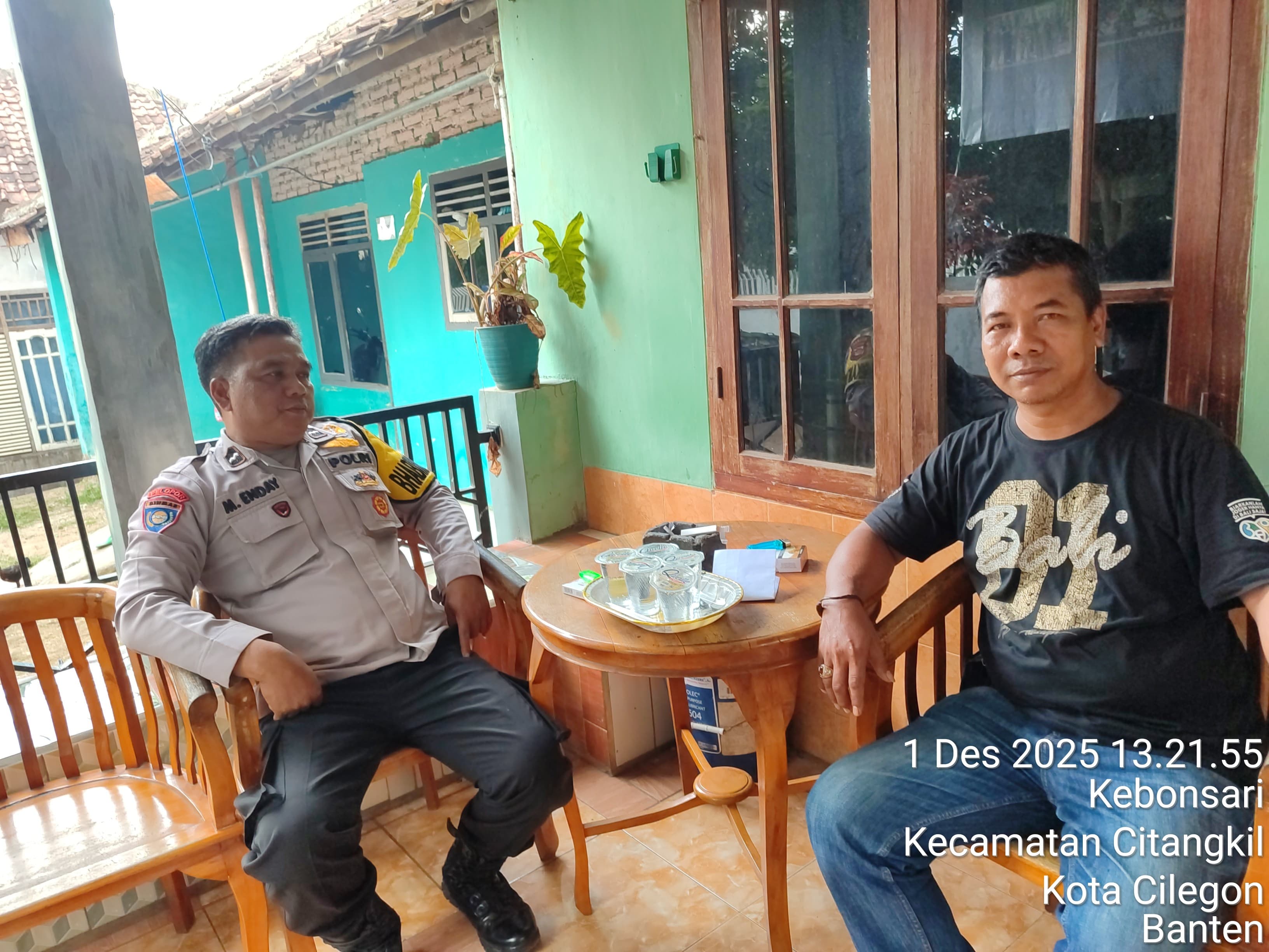 Cilegon -  Bhabinkamtibmas Polsek Ciwandan Polres Cilegon Polda Banten Menyapa warga serta Ajak warga Binaannya untuk berperan aktif jaga keamanan lingkungan serta jalin komunikasi agar tercipta situasi aman di daerah hukum Polsek Ciwandan Polres Cilegon Polda Banten,Senin (01/12/2025).