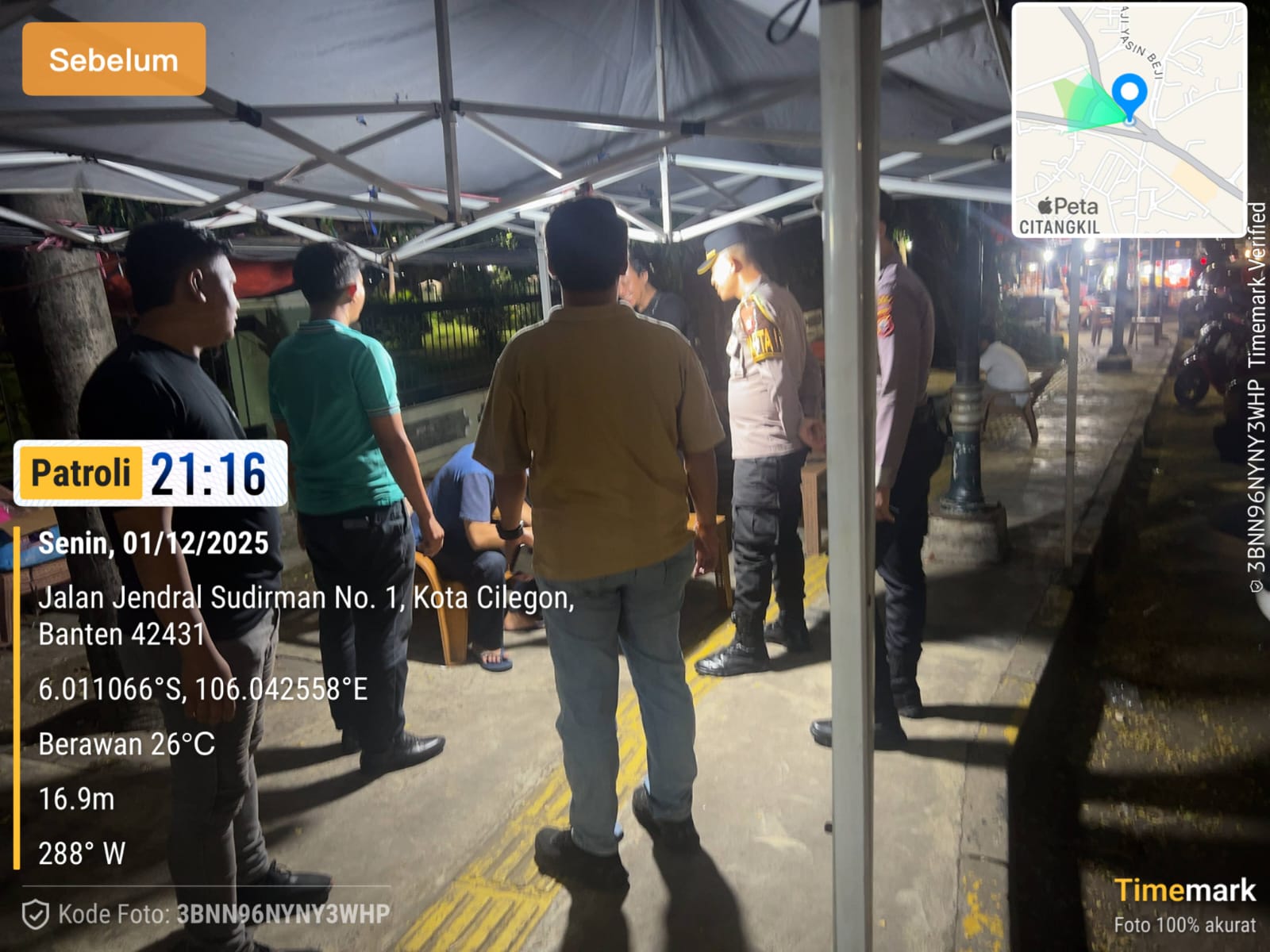 Polres Cilegon melaksanakan pengecekan pos kamling untuk memastikan keamanan lingkungan. Petugas memberikan imbauan kepada warga untuk tetap waspada dan berperan dalam menjaga keamanan.