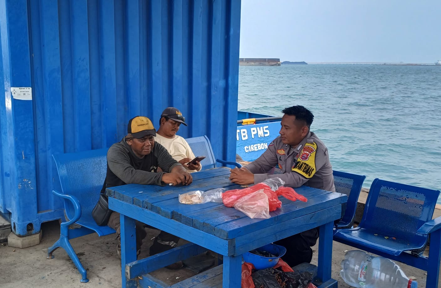 Jalin Silaturahmi, Personil Bhabinkamtibmas Polsek KP Banten berbincang dengan Buruh Pelabuhan