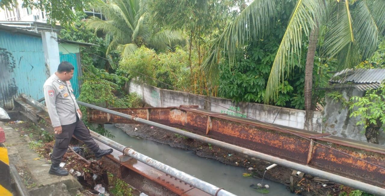 Personel Polsek Anyar Polres Cilegon Polda Banten melaksanakan Patroli kewilayahan mengecek debit air di Sungai pasca Hujan antisipasi banjir di wilayah Kec. Anyar, Kamis (04/12).