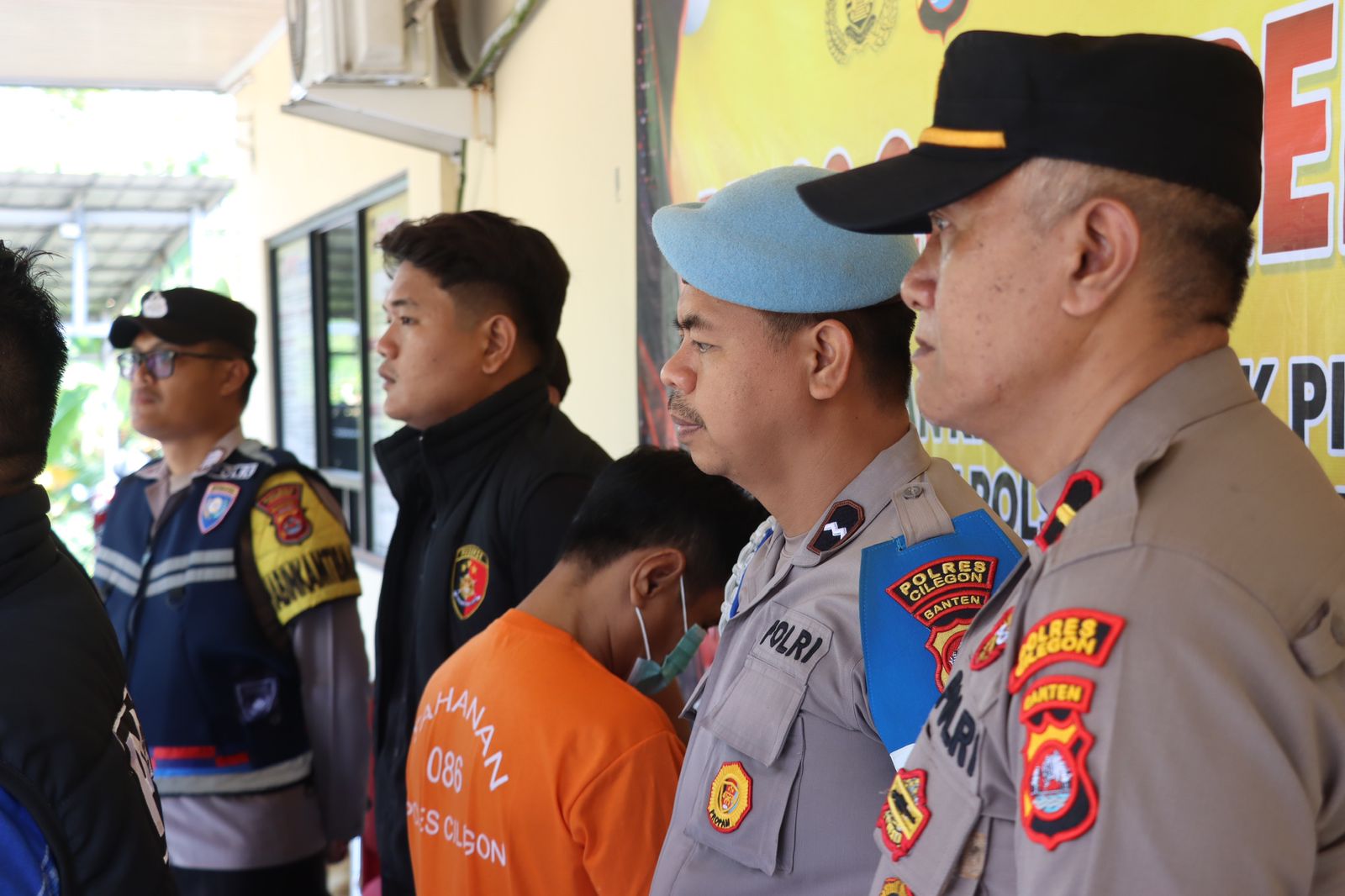 Kapolsek Purwakarta Polres Cilegon Polda Banten IPTU Sukanda .S.M Pada saat press confrence pengungkapan kasus Pencurian HP yang terjadi di alun alun kota Cilegon dalam kegiatan senam bersama hari guru nasional pada hari Senin tanggal 24 November 2025 Pelapor sedang berada di alun-alun kota Cilegon dalam rangka mengikuti kegiatan hari guru,pada saat kegiatan senam bersama, Pelapor sedang membeli makanan di salah satu stand yang ada di lapangan alun-alun tersebut, kemudian ada seseorang yang menyenggol tas ransel Pelapor yang sedang Pelapor pakai di bagian belakang badan Pelapor, lalu pada saat Pelapor duduk mau makan di sekitar stand tersebut, pelapor melihat tas ransel Pelapor dalam keadaan resleting terbuka. Ketika Pelapor mengecek isi dari tas ransel Pelapor, Pelapor tidak menemukan handphone yang sebelumnya Pelapor taruh di dalam tas ransel Pelapor tersebut/hilang, lalu Pelapor dan teman Pelapor Sdr Amirudin mencari keberadaan HP Pelapor yang hilang tersebut, kemudian ada 1 (satu) orang yang Pelapor dan Sdr. Amirudin curigai karena tidak memakai kostum yang seragam dengan peserta yang lainnya, Ketika Pelapor mencurigai 1 (satu) orang tersebut, orang tersebut jalan cepat dan berlari menuju kebelakang kolam air mancur, lalu Sdr. Amirudin melaporkan kepada salah satu anggota polisi yang sedang melakukan pengamanan di sekitar alun-alun tersebut bahwa ada yang dicurigai menjadi pelaku pencurian tersebut. Kemudian ada beberapa anggota polisi yang ikut melakukan pengejaran terhadap terduga pelaku tersebut dan akhirnya terduga pelaku tersebut berhasil diamankan dan di bawa ke pos security, setelah sampai di pos security tas terduga pelaku di buka ternyata benar ada HP Pelapor yang dicuri oleh orang tersebut. Dengan kejadian tersebut pelapor mengalami kerugian sebesar RP 2.600.000 (dua juta enam ratus ribu rupian) dan selanjutnya melaporkan ke Polsek Purwakarta Polres Cilegon Polda Banten