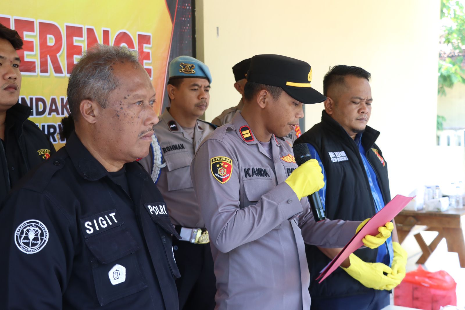 Kapolsek Purwakarta Polres Cilegon Polda Banten IPTU Sukanda .S.M Pada saat press confrence pengungkapan kasus Pencurian HP yang terjadi di alun alun kota Cilegon dalam kegiatan senam bersama hari guru nasional pada hari Senin tanggal 24 November 2025 Pelapor sedang berada di alun-alun kota Cilegon dalam rangka mengikuti kegiatan hari guru,pada saat kegiatan senam bersama, Pelapor sedang membeli makanan di salah satu stand yang ada di lapangan alun-alun tersebut, kemudian ada seseorang yang menyenggol tas ransel Pelapor yang sedang Pelapor pakai di bagian belakang badan Pelapor, lalu pada saat Pelapor duduk mau makan di sekitar stand tersebut, pelapor melihat tas ransel Pelapor dalam keadaan resleting terbuka. Ketika Pelapor mengecek isi dari tas ransel Pelapor, Pelapor tidak menemukan handphone yang sebelumnya Pelapor taruh di dalam tas ransel Pelapor tersebut/hilang, lalu Pelapor dan teman Pelapor Sdr Amirudin mencari keberadaan HP Pelapor yang hilang tersebut, kemudian ada 1 (satu) orang yang Pelapor dan Sdr. Amirudin curigai karena tidak memakai kostum yang seragam dengan peserta yang lainnya, Ketika Pelapor mencurigai 1 (satu) orang tersebut, orang tersebut jalan cepat dan berlari menuju kebelakang kolam air mancur, lalu Sdr. Amirudin melaporkan kepada salah satu anggota polisi yang sedang melakukan pengamanan di sekitar alun-alun tersebut bahwa ada yang dicurigai menjadi pelaku pencurian tersebut. Kemudian ada beberapa anggota polisi yang ikut melakukan pengejaran terhadap terduga pelaku tersebut dan akhirnya terduga pelaku tersebut berhasil diamankan dan di bawa ke pos security, setelah sampai di pos security tas terduga pelaku di buka ternyata benar ada HP Pelapor yang dicuri oleh orang tersebut. Dengan kejadian tersebut pelapor mengalami kerugian sebesar RP 2.600.000 (dua juta enam ratus ribu rupian) dan selanjutnya melaporkan ke Polsek Purwakarta Polres Cilegon Polda Banten
