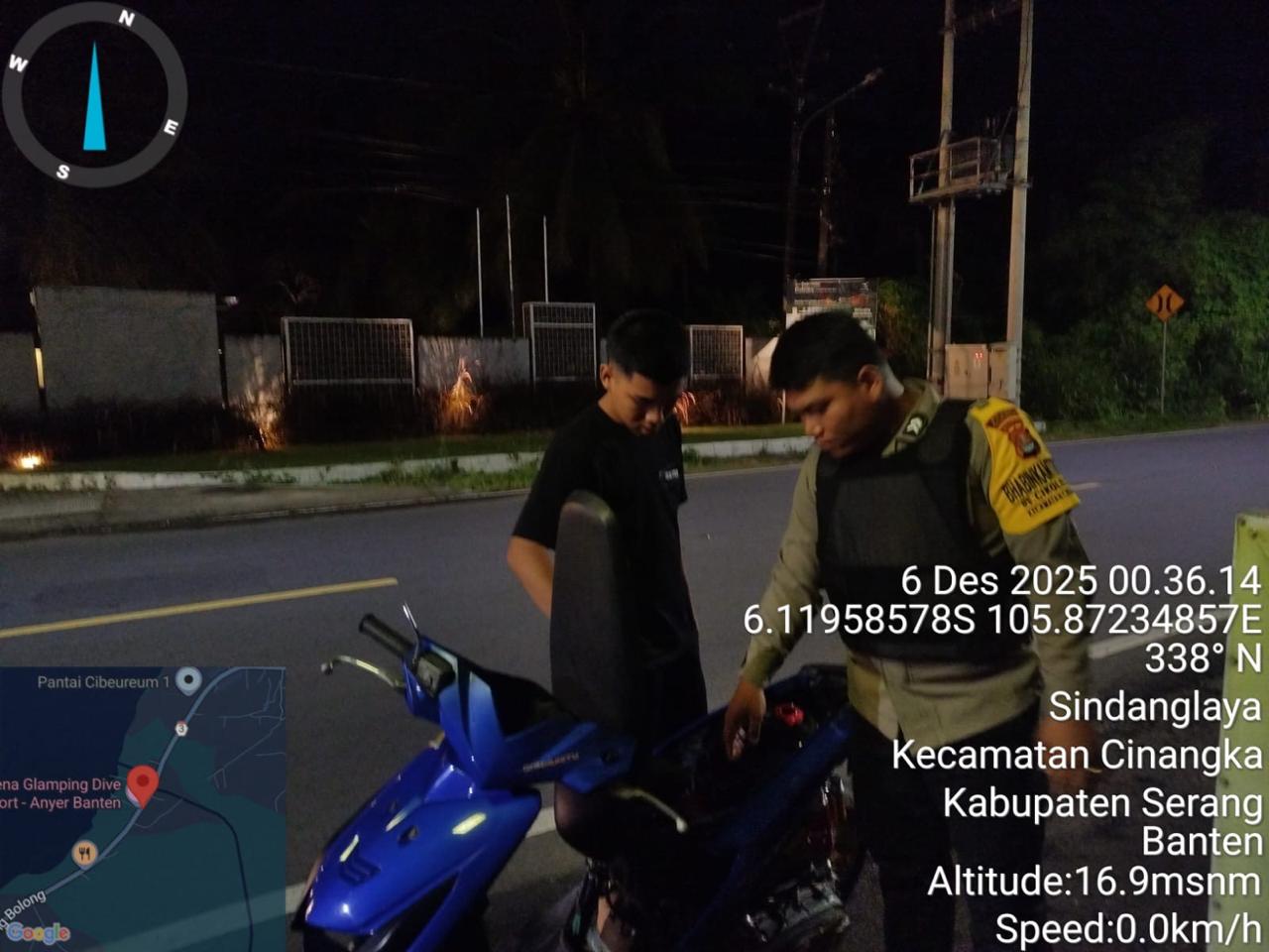 *Polres Cilegon* – Dalam Rangka Pencegahan Kejahatan Jalanan dan Memelihara situasi keamanan dan menjaga serta memberikan rasa aman dan nyaman di masyarakat,Salah satu upaya untuk mewujudkan hal tersebut sebagaimana yang dilakukan oleh Personil Polsek Cinangka Polres Cilegon Polda Banten melaksanakan giat patroli blue light malam hari hingga menjelang pagi, Sabtu (06/12/2025).