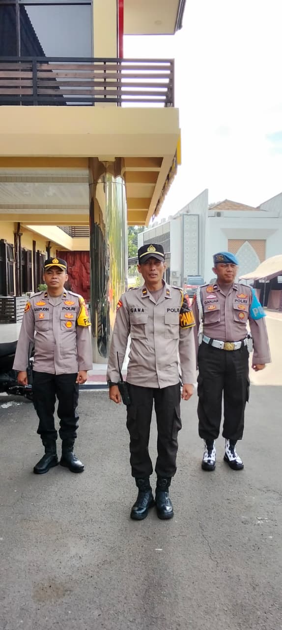 Cilegon, personel Satreskrim Polres Cilegon Polda Banten melaksanakan piket di penjagaan pintu masuk Polres Cilegon Polda Banten untuk memastikan mako Polres Cilegon dalam keadaan aman dan nyaman dalam melayani Masyarakat. Sabtu (06/12/2025).