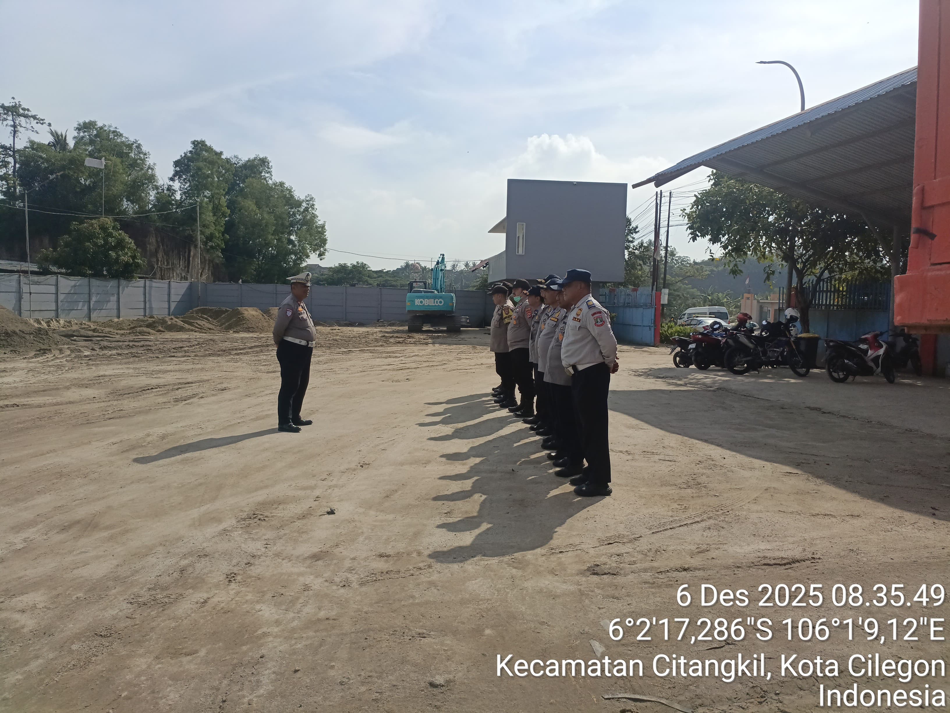 Apel KRYD, Personil Polsek Ciwandan Sampaikan Himbauan Jam Operasional Angkutan Tambang