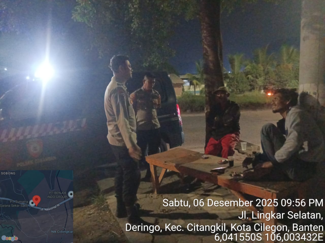 Cilegon - Guna mengantisipasi gangguan kamtibmas di Daerah hukum Polsek Ciwandan, Personil Polsek Ciwandan Polres Cilegon Polda Banten Selalu menggelar patroli malam Kedaerah Pada Jam Yang Dianggap Rawan hingga dini hari, Minggu (07/12/2025).