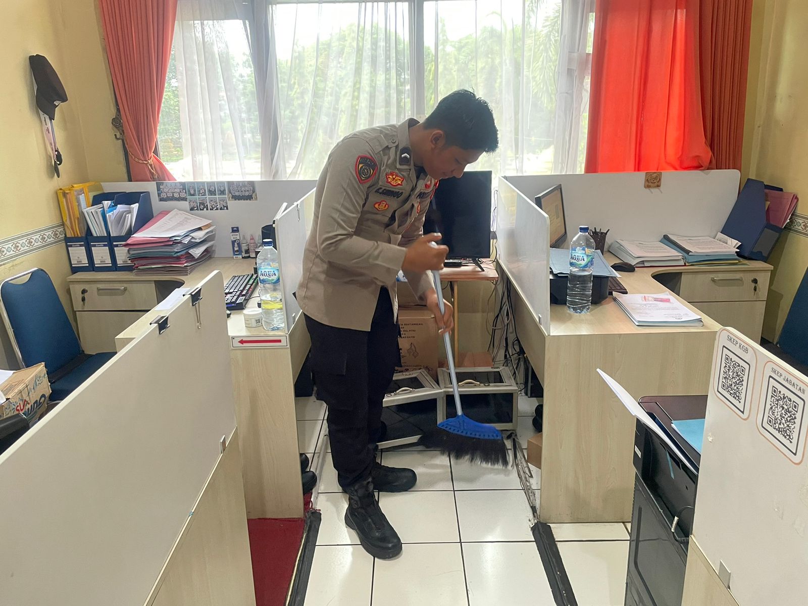 Anggota Bag SDM Polres Cilegon, selaalu melaksanakan aktivias rutin dalam membersihkan ruangan kerja.