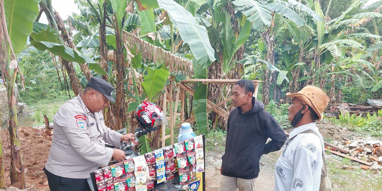 Bripka Gery Bhabinkamtibmas Berbincang Bincang dengan masyarakat Di Warung Bhabin Edukasi Kamtibmas