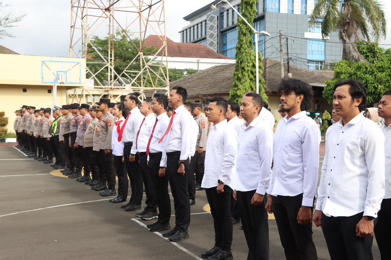 Apel tersebut digelar atas perintah Kapolres Cilegon AKBP Dr. Martua Raja Taripar Laut Silitonga, S.H., S.I.K., M.Si., dan dipimpin oleh Kabag SDM Polres Cilegon, Kompol Entang Cahyadi, S.H.