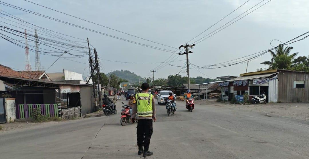 Bripka Gery & Dishub Laksanakan Gatur Lalin Di Jalan Raya PT Apexindo Bojonegara