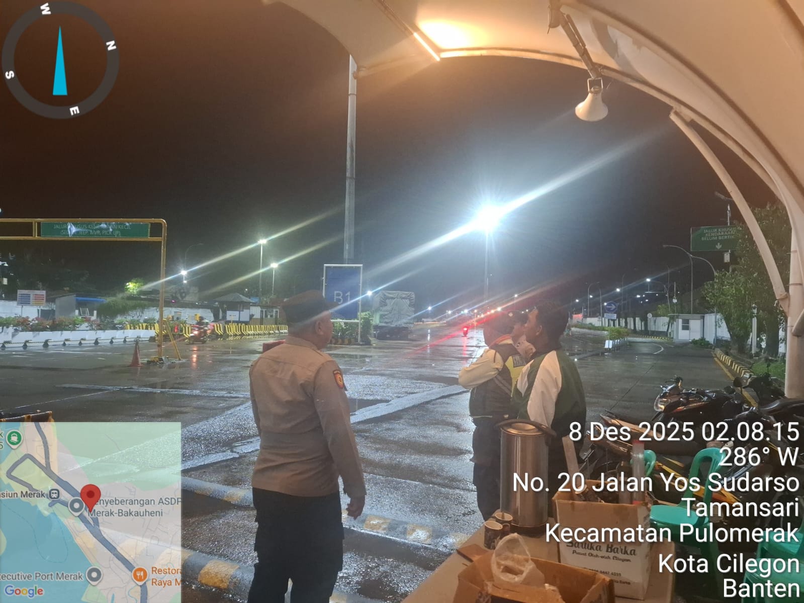 Cilegon - Personil Polsek Kskp Merak Polres Cilegon melaksanakan patroli di kawasan pelabuhan merak memberikan rasa aman dan damai, Senin (08/12/2025)