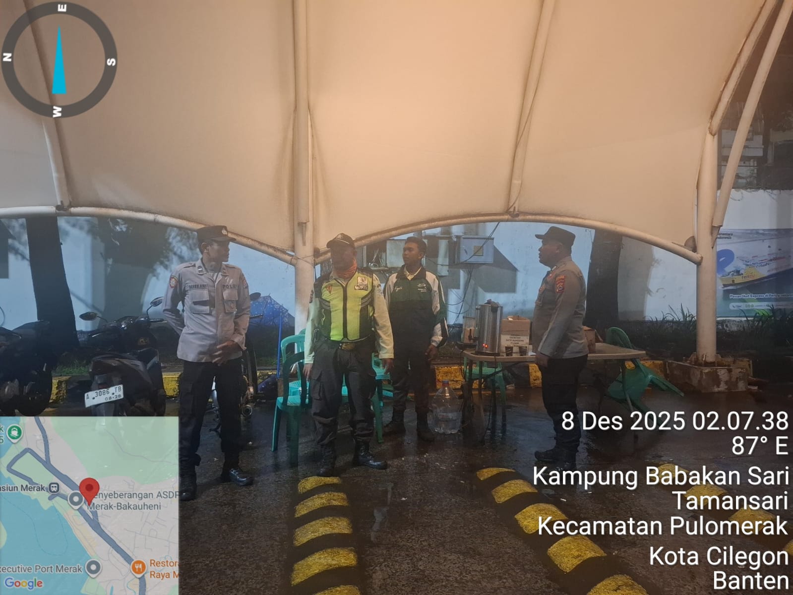 Cilegon - Personil Polsek Kskp Merak Polres Cilegon melaksanakan patroli di kawasan pelabuhan merak memberikan rasa aman dan damai, Senin (08/12/2025)
