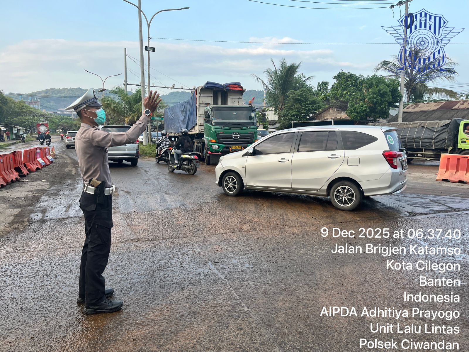 Cilegon - Personil  Polsek Ciwandan Polres Cilegon Polda Banten melaksanakan giat Strong Poin Pengaturan Lalu Lintas Disimpang Brown Kelurahan Gunung Sugih guna menciptakan ketertiban, keamanan dan Kelancaran Lalu-lintas bagi masyarakat, Senin (08/12/2025).
