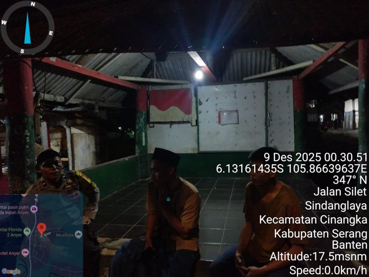 *Polres Cilegon* || Personel Bhabinkamtibmas Polsek Cinangka melaksanakan Program Komandan Wish Kapolda Banten RONDA SATKAMLING menyampaikan komunikasi dengan Petugas Siskamling agar berperan aktif dalam menciptakan Harkamtibmas yang aman dan Kondusif, Selasa (09/12/2025).