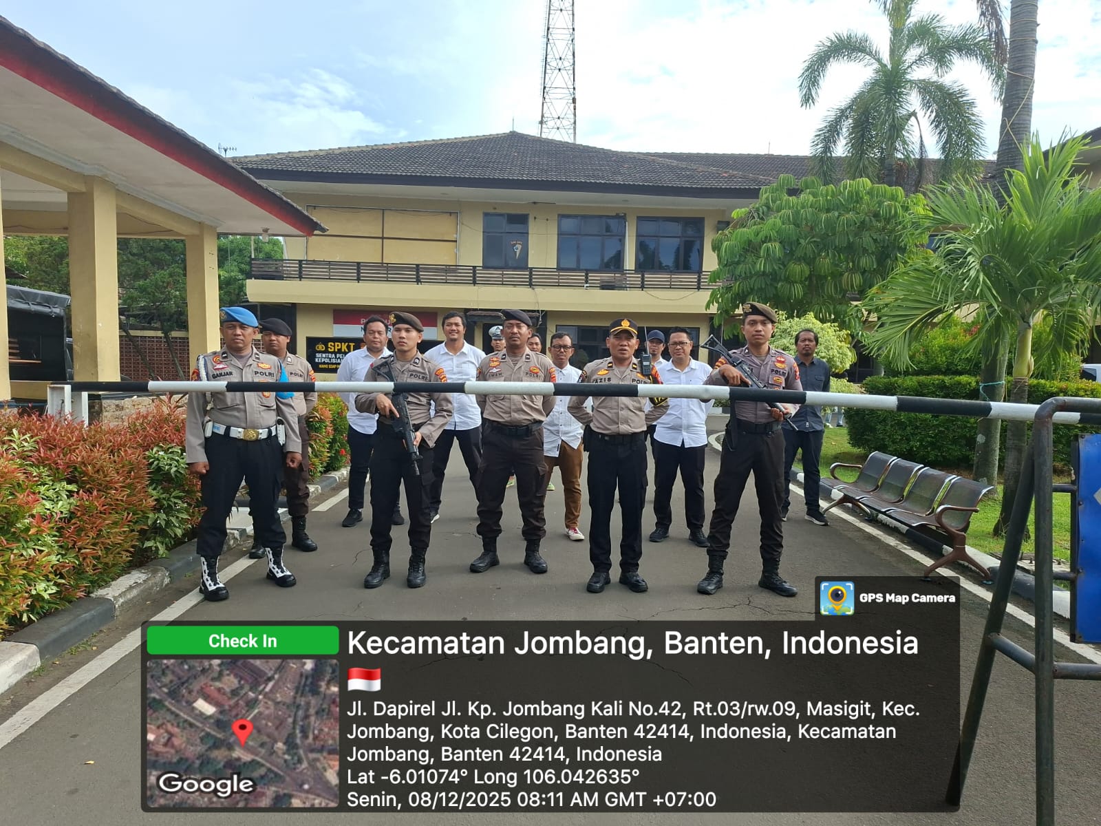 Cilegon, personel Satreskrim Polres Cilegon Polda Banten melaksanakan piket di penjagaan pintu masuk Polres Cilegon Polda Banten untuk memastikan mako Polres Cilegon dalam keadaan aman dan nyaman dalam melayani Masyarakat tanpa adanya gangguan kejahatan. Senin (08/12/2025).