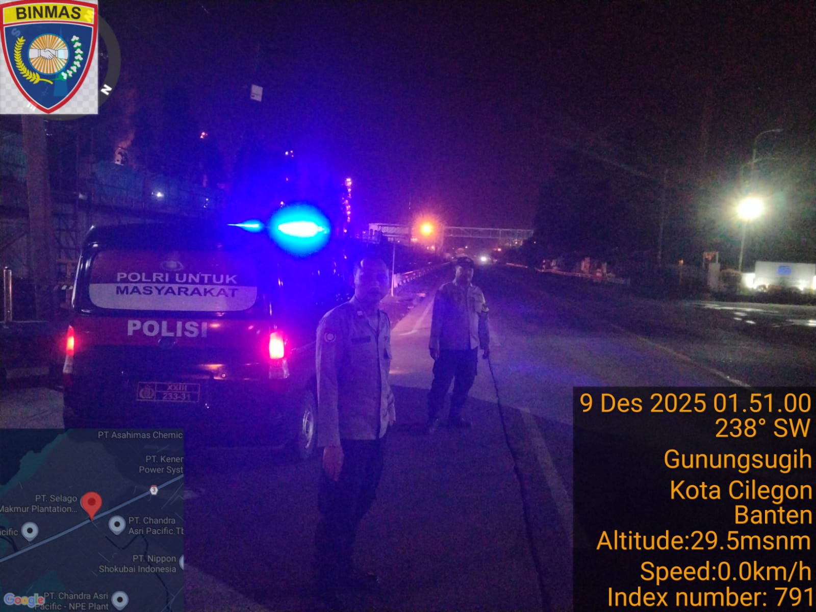 Personel Polsek Ciwandan Polres Cilegon Polda Banten Patroli Malam Nyalakan Rotator Blue Light Kondusifkan Sitkamtibmas.