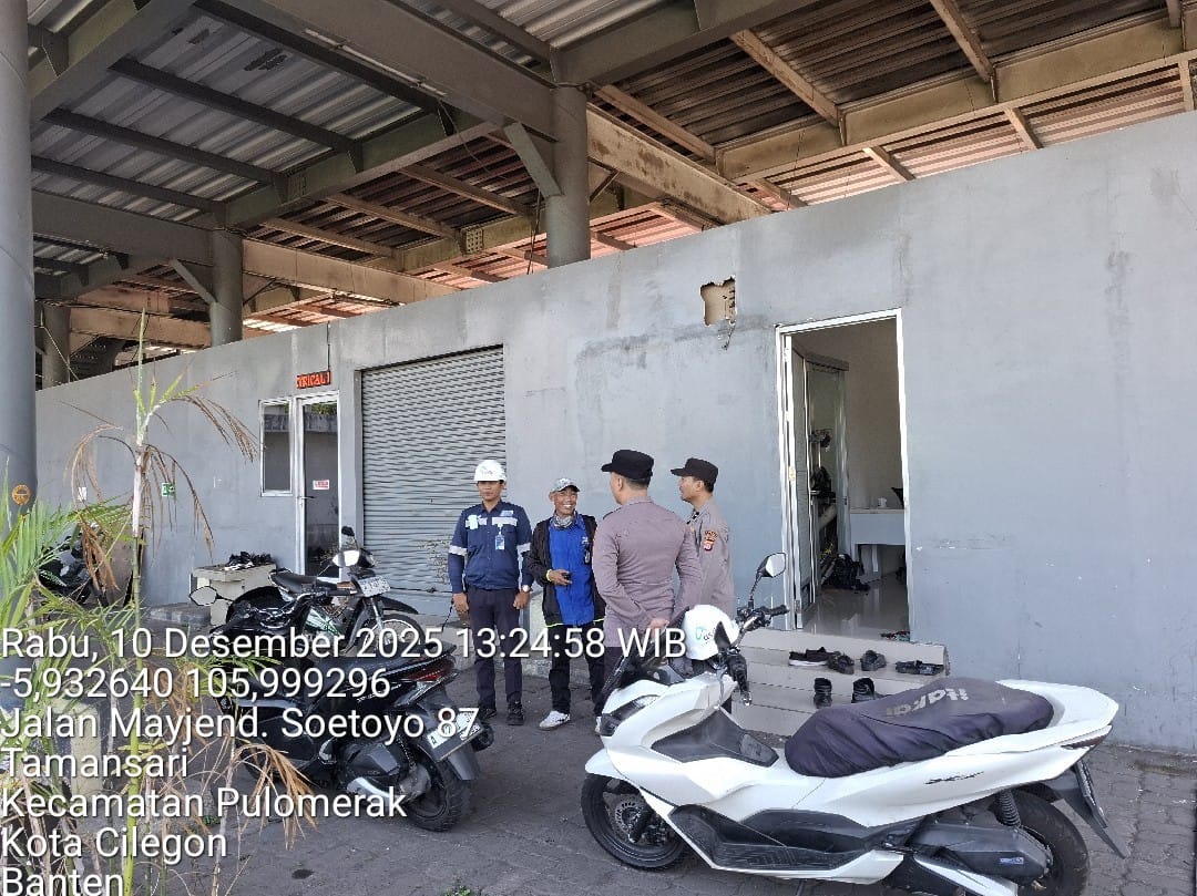 Cilegon - Personel Polsek Kskp Merak Polres Cilegon Polda Banten melaksanakan sambang dan patroli kawasan pelabuhan merak dalam rangka menjaga Harkamtibmas di Kawasan Pelabuhan Merak, Rabu (10/12/2025).