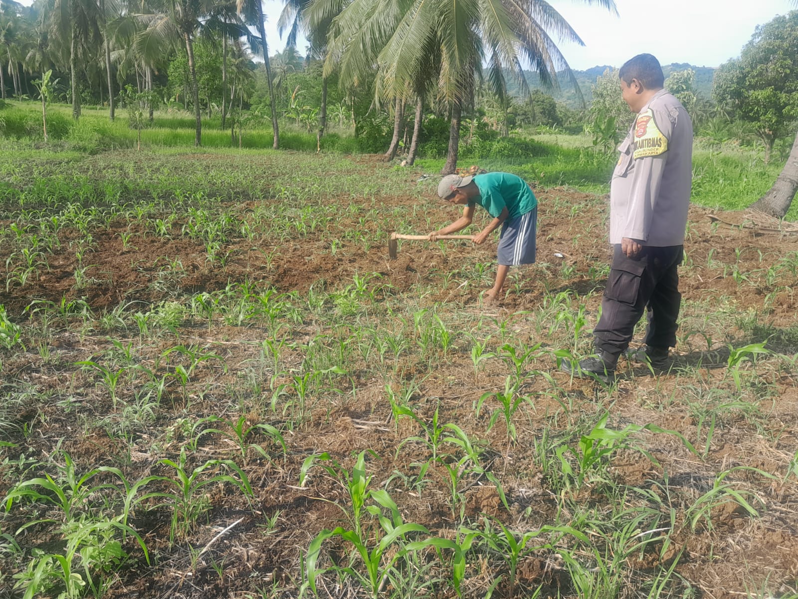 -Polres Cilegon–Polda Banten. Bhabinkamtibmas Desa Kubang Lampit, Aiptu Wawan Setiabudi dari Polsek Purwakarta Polres Cilegon, secara langsung mendampingi petani lokal dalam memeriksa kondisi tanaman jagung yang sedang tumbuh. Kegiatan ini bertujuan untuk mendukung program swasembada pangan yang digerakkan Pemerintah.Minggu.(14-12-2025).