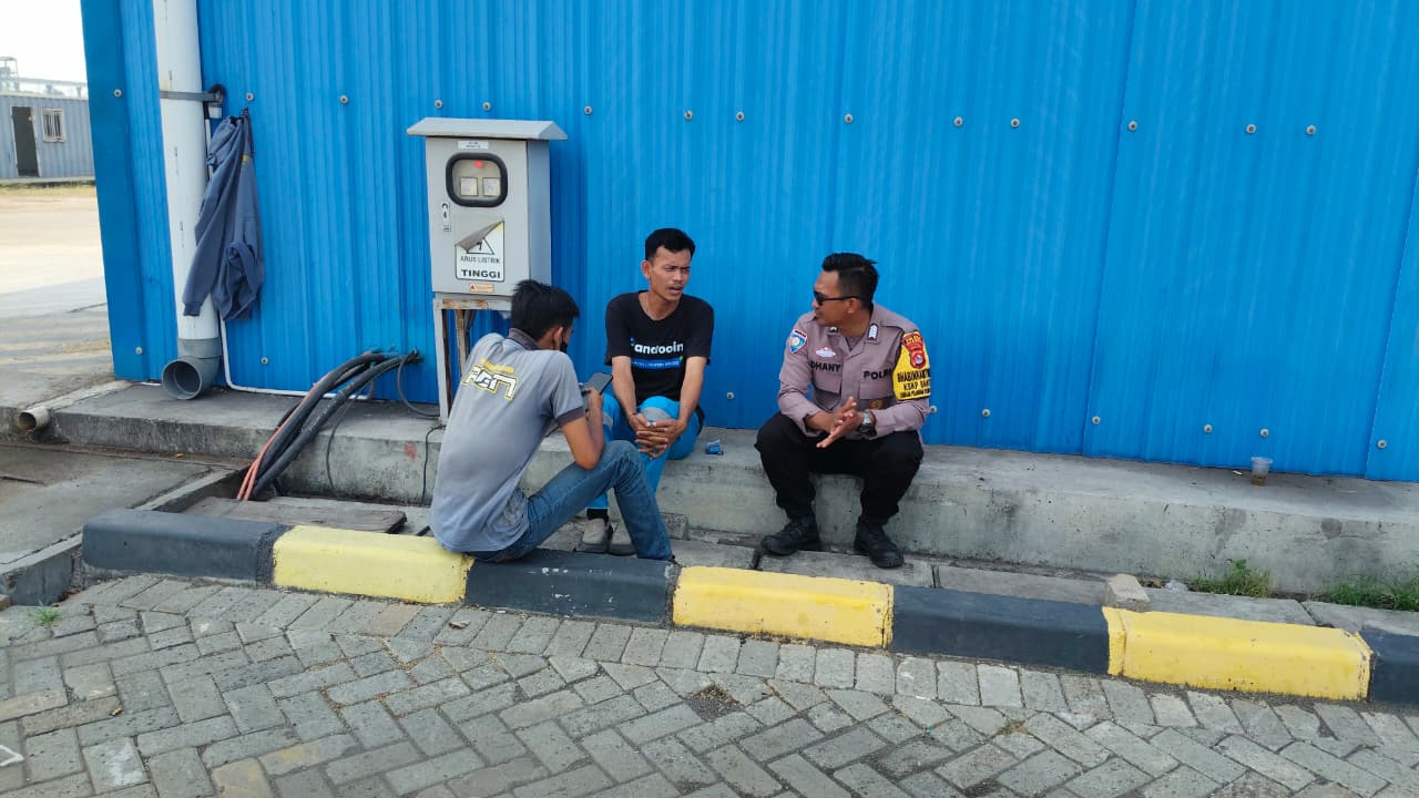 Jalin Silaturahmi, Bhabinkamtibmas Polsek Kawasan Pelabuhan Banten berbincang ke Buruh Pelabuhan