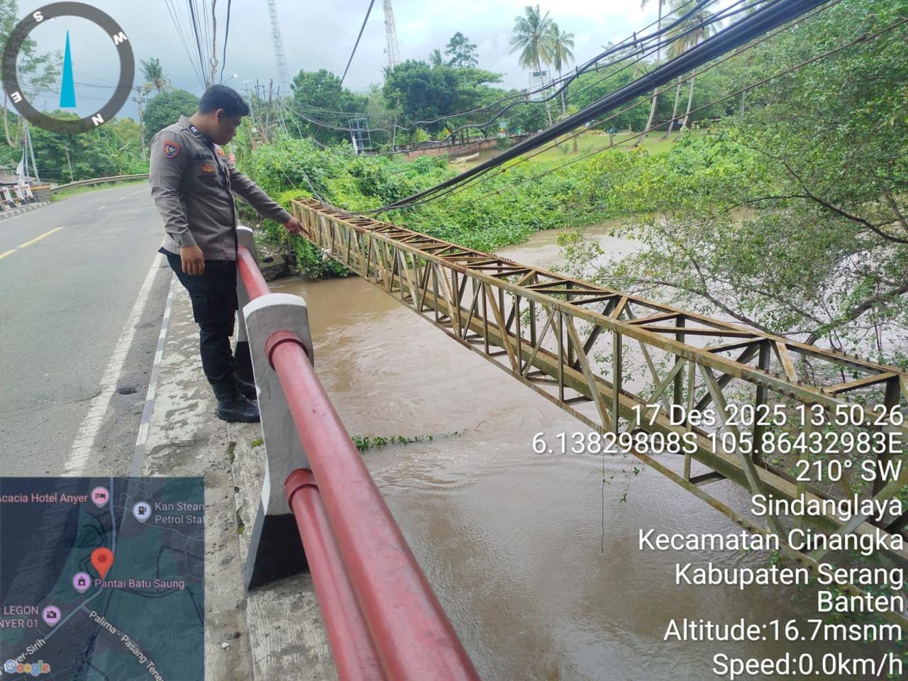 Piket Polsek Cinangka secara rutin melakukan pengecekan kondisi sungai dan berkoordinasi dengan pihak terkait untuk memantau perkembangan debit air. Pemantauan ini juga melibatkan partisipasi aktif dari masyarakat setempat.