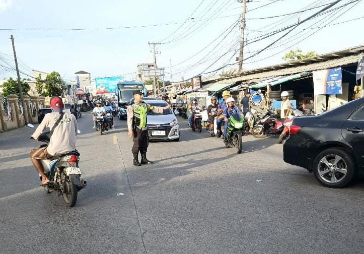 Berikan Rasa Aman dan Lancar, Personel Polres Cilegon Atur Lalin Anyar–Cinangka
