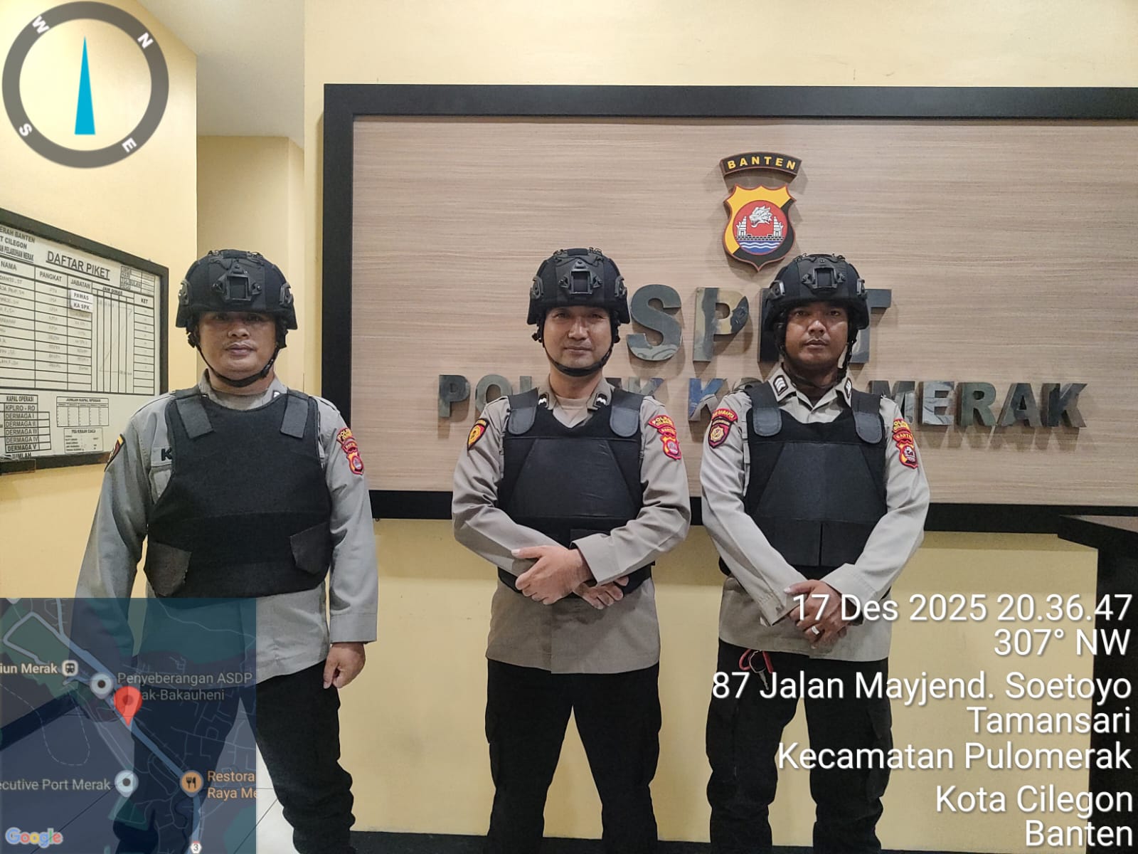 Cilegon - Personel piket jaga Polsek Kskp Merak Polres Cilgon Polda Banten melaksanakan siaga 1 Polsek pelaksanaan Sispam Mako oleh piket siaga dipimpin oleh Kspk Polsek Kskpy Merak Polres Cilegon Polda Banten, Kamis (18/12/2025).