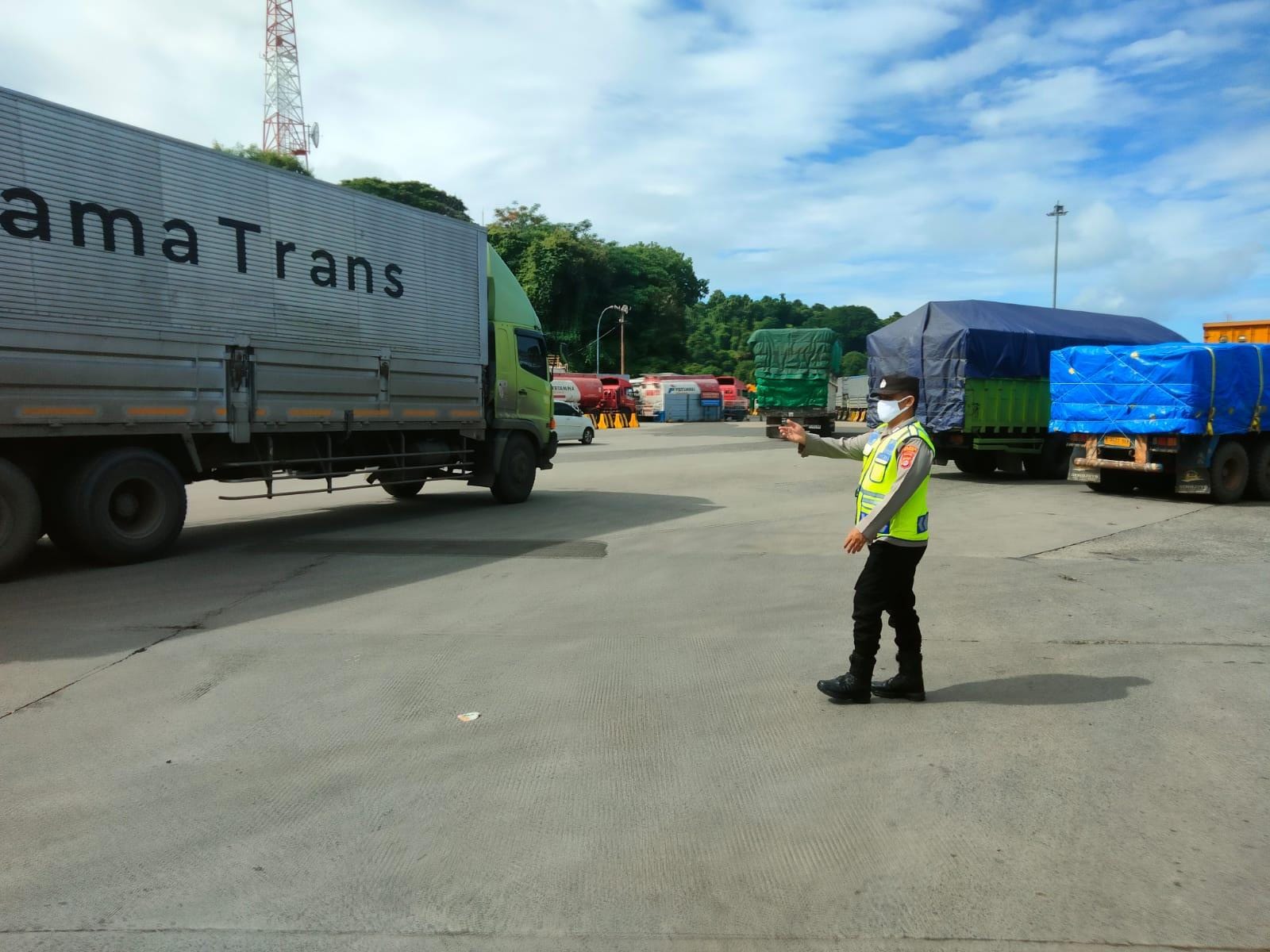 Personel Polsek KSKP Merak Lakukan Pengaturan Antrian Kendaraan di Pelabuhan