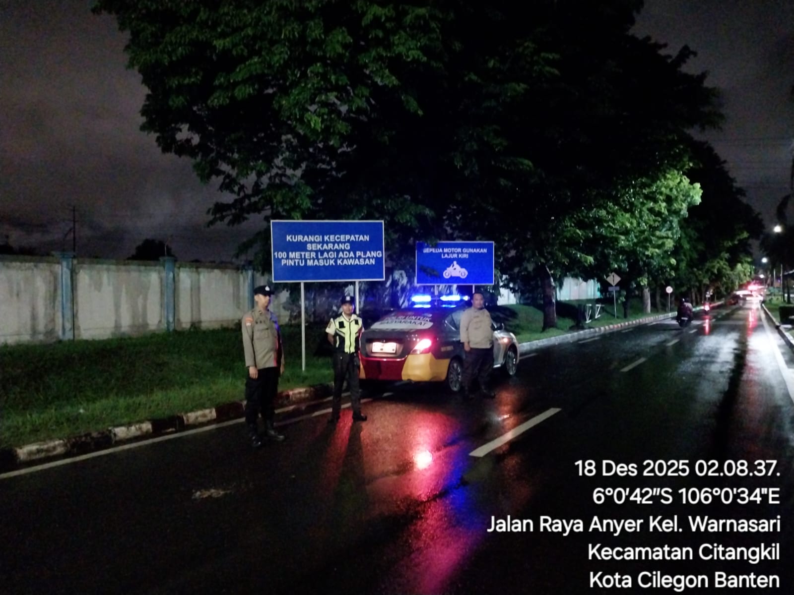Cilegon - Demi Menjaga keamanan Daerah Hukum Polsek Ciwandan agar tetap kondusif, Personil Polsek Ciwandan Polres Cilegon Polda Banten Melakukan kegiatan sambang kamtibmas Dan Patroli Bersama Security, Kamis (18/12/2025).
