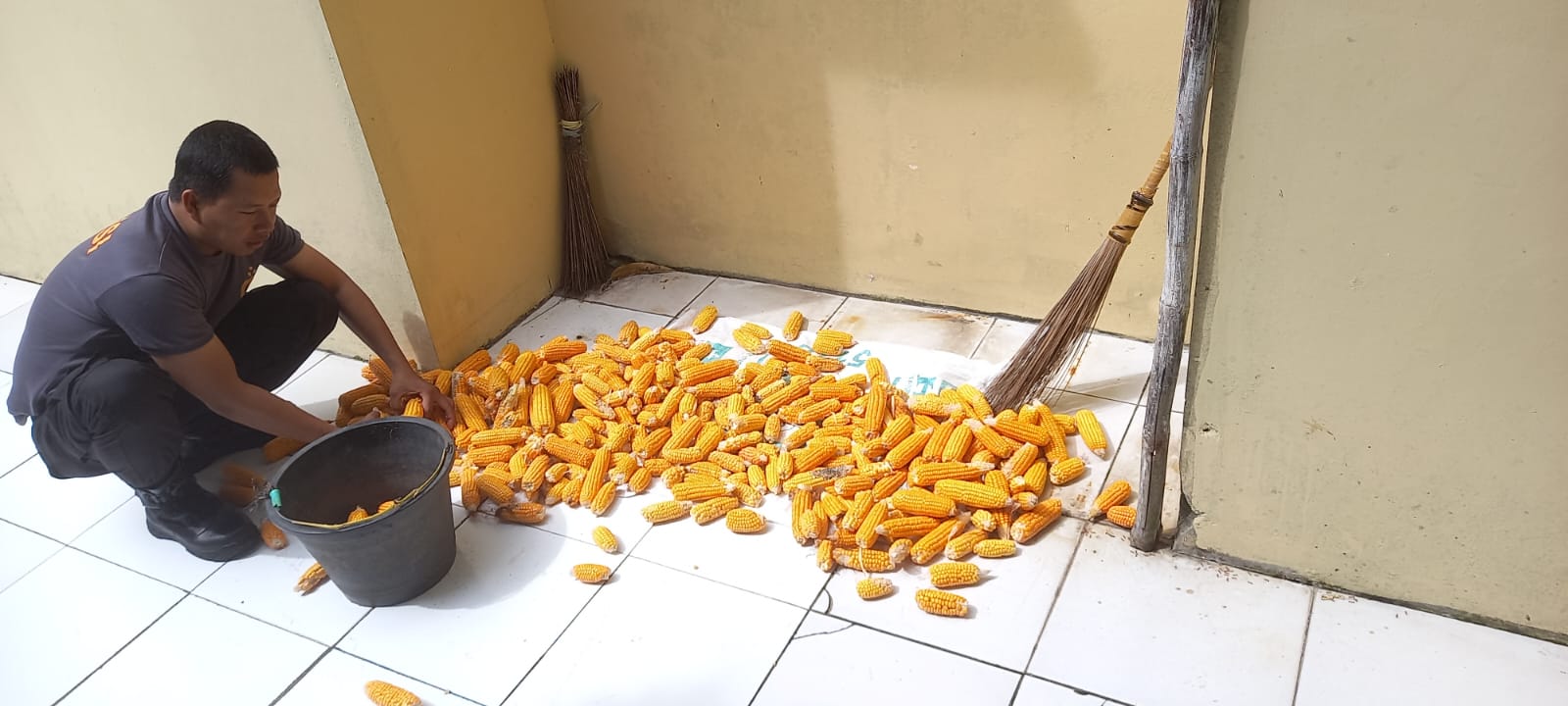 Kegiatan membantu menjemur jagung dilakukan ketika Bripka Agustoni melakukan patroli rutin untuk memantau keamanan dan ketertiban di wilayahnya. Saat melihat warga kesulitan menjemur jagung karena jumlah yang cukup banyak dan kurangnya tenaga, dia segera menawarkan bantuan tanpa ragu.