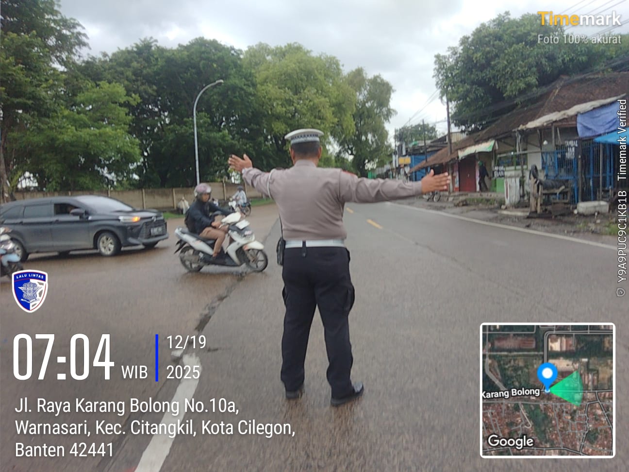 Cilegon - Dalam Mewujudkan Aksi Nyata Pelayanan Kepada Masyarakat,Personil Polsek Ciwandan Polres Cilegon Polda Banten Laksanakan Strong Poin Pengaturan Lalu-lintas, Jum'at  (19/12/2025).