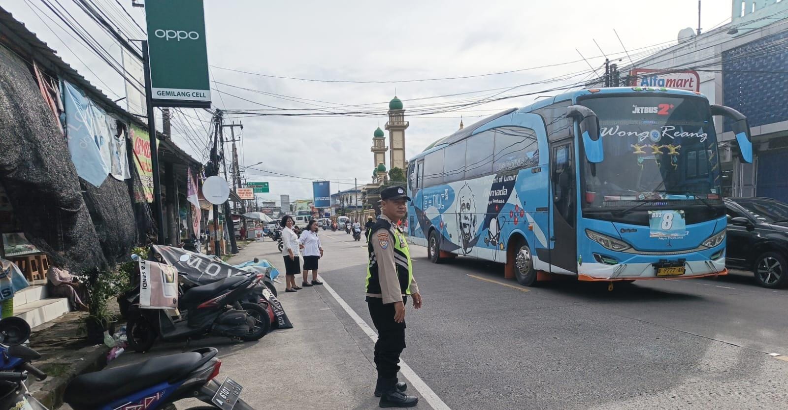 Polsek Anyar Giat Pengaturan Lalu Lintas Jalur Anyar - Cinangka Pada Akhir Pekan