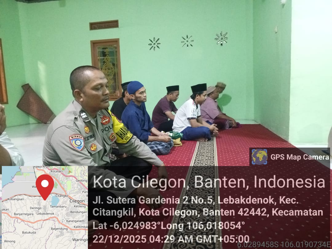 Cilegon – Bhabinkamtibmas Polsek Ciwandan Polres Cilegon Polda Banten menggelar kegiatan Pembinaan Rohani dengan Sholat subuh keliling di Masjid Yang ada Di Daerah hukum Polsek Ciwandan Polres Cilegon Polda Banten, Selasa (23/12/2025).