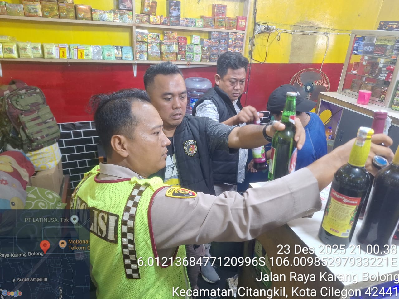 Kapolres Cilegon Polda Banten AKBP Dr. Martua Raja Taripar Laut Silitonga melalui Kapolsek Ciwandan Polres Cilegon Polda Banten KOMPOL Andi Suherman Mengatakan Pada hari Selasa tanggal 23 Desember  2025 pukul 21.30 wib Telah dilaksanakan kegiatan operasi Penyakit masyarakat (pekat) dengan sasaran minuman keras (miras) di daerah hukum Polsek Ciwandan.