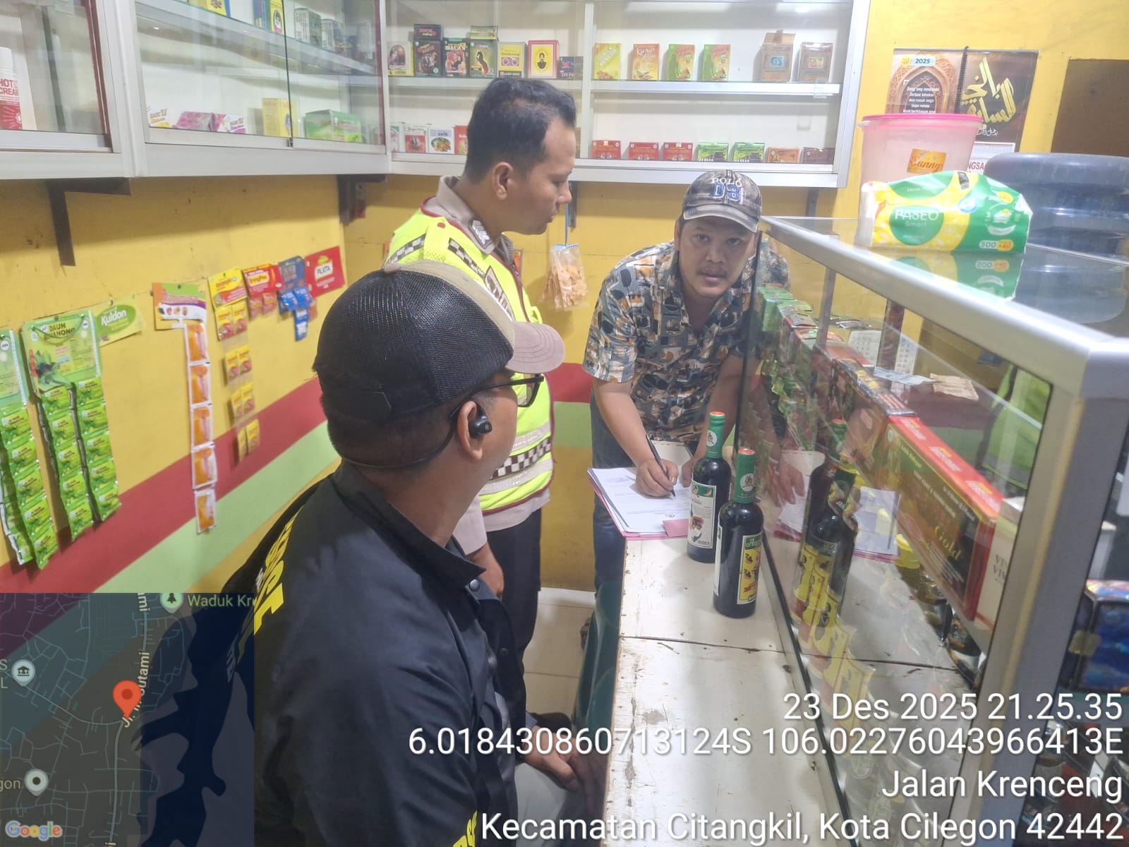 Kapolres Cilegon Polda Banten AKBP Dr. Martua Raja Taripar Laut Silitonga melalui Kapolsek Ciwandan Polres Cilegon Polda Banten KOMPOL Andi Suherman Mengatakan Pada hari Selasa tanggal 23 Desember  2025 pukul 21.30 wib Telah dilaksanakan kegiatan operasi Penyakit masyarakat (pekat) dengan sasaran minuman keras (miras) di daerah hukum Polsek Ciwandan.