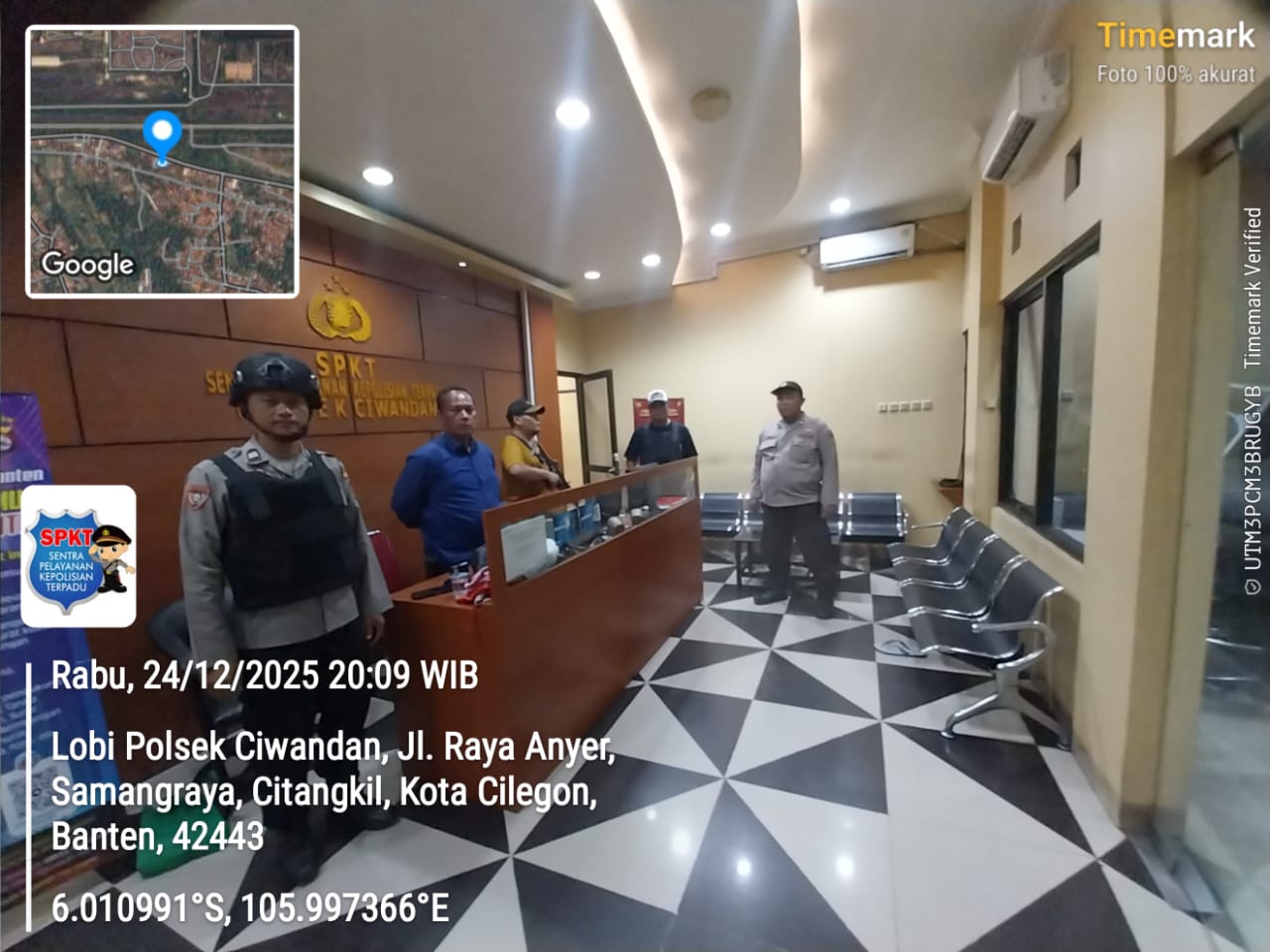 Cilegon - Dalam Kesiap Siagaan dan Memperketat Penjagaan Mako (Markas Komando), Personil Polsek Ciwandan Polres Cilegon Polda Banten melaksanakan Sistem Pengamanan Markas Komando (Sispam Mako), Rabu (24/12/2025).