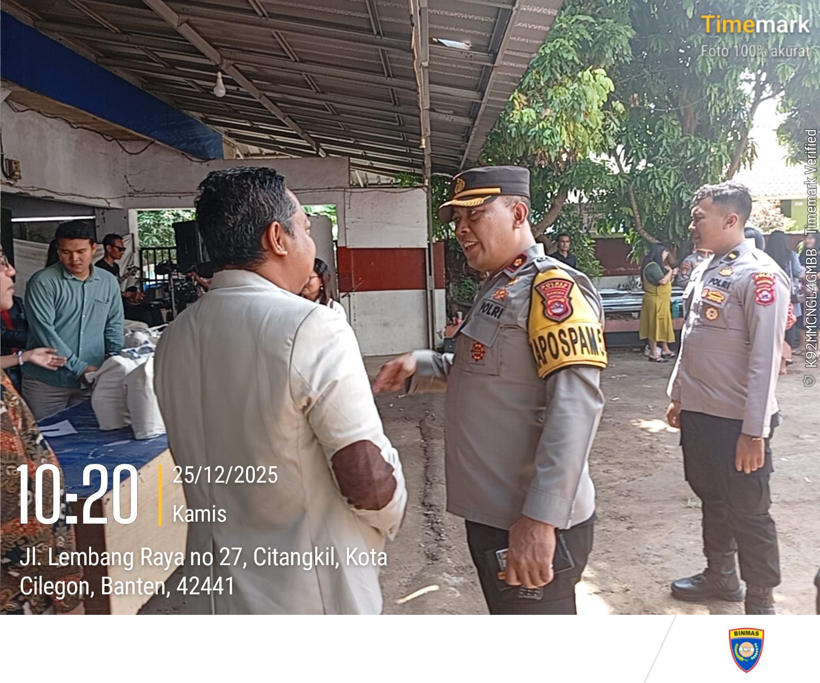 Cilegon – Kapolsek Ciwandan Beserta Personil Polsek Ciwandan Polres Cilegon Polda Banten melaksanakan Pengamanan Tempat Ibadah Umat Kristiani pada kegiatan Ibadah Perayaan Natal Tahun 2023 Di Rumah Doa GBI Pimpinan Pdt. Paul Lingkungan Lembang RT. 002 RW. 004 Kecamatan Citangkil Kota Cilegon, Kamis (25/12/2025).