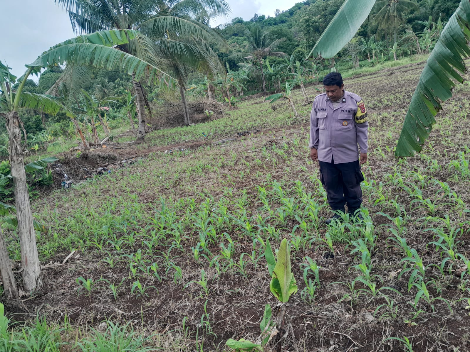 PENGECEKAN TANAMAN JAGUNG DI WILAYAH KELURAHAN TEGAL BUNDER BERSAMA PERSONIL BHABINKAMTIBMAS