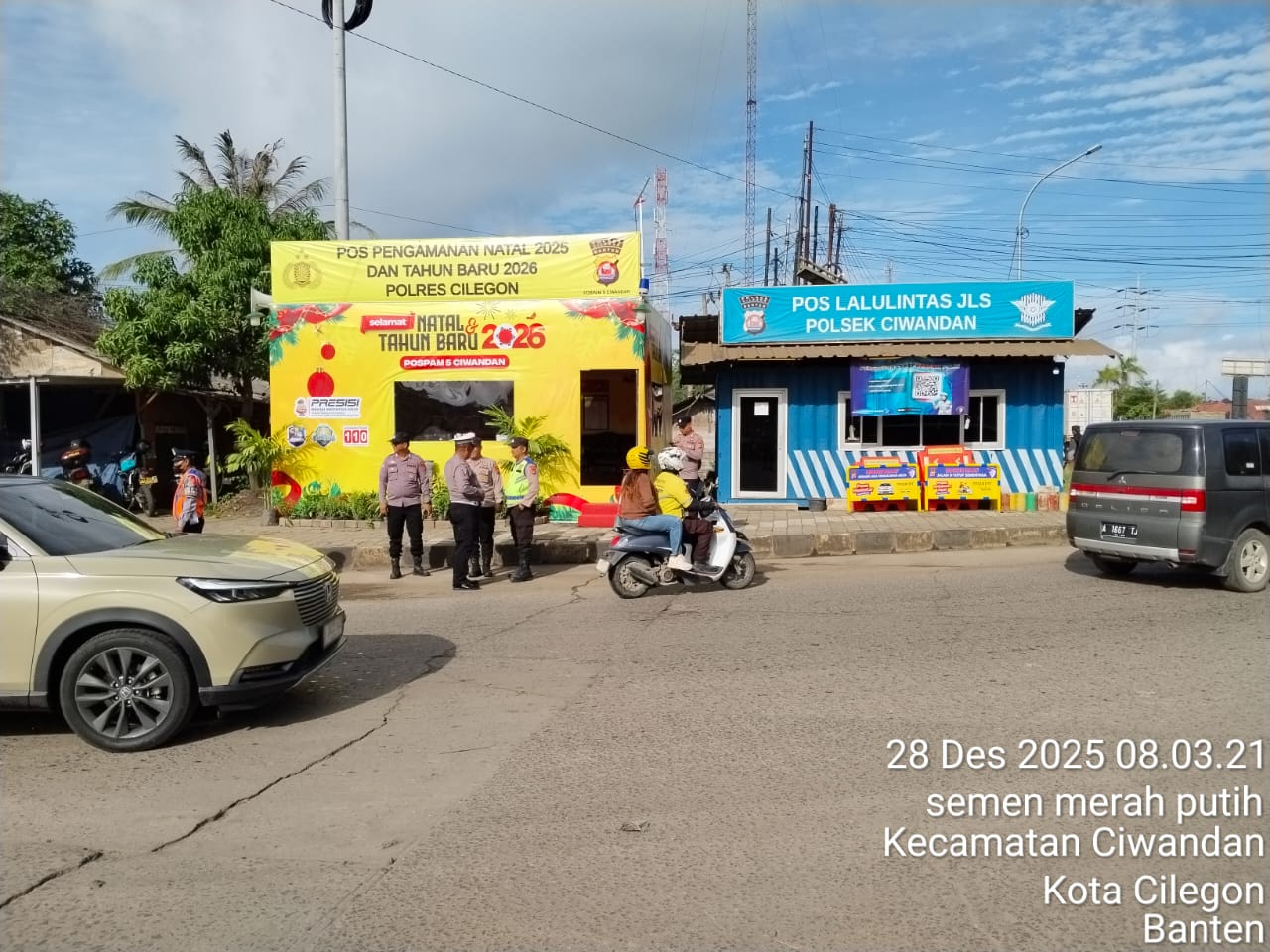 Cilegon - Dalam rangka memberikan Pelayanan terbaik kepada warga masyarakat Personil Pospam 5 Polsek Ciwandan Polres Cilegon Berkolaborasi Dengan Babinsa Koramil Ciwandan Dalam Menciptakan situasi yang kondusif, Minggu (28/12/2025).