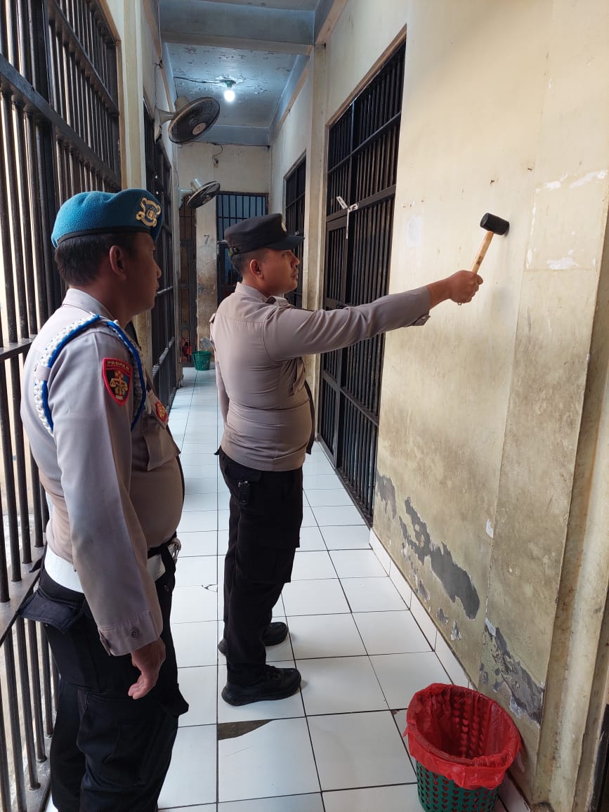 Polres bersama piket Jaga tahanan mengecek secara keseluruhan kondisi ruang