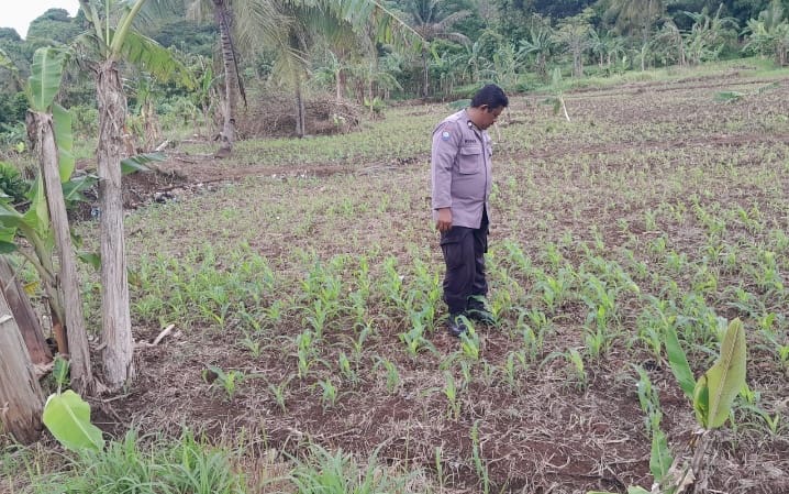 Personil Bhabinkamtibmas Polsek Purwakarta Polres Cilegon Cek dan Kontrol Tanaman Jagung di Kubang Lampit, Tegalbunder Cilegon