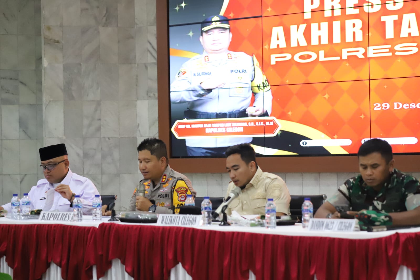 Cilegon – Polres Cilegon Polda Banten menggelar Press Release Akhir Tahun 2025 sebagai bentuk pertanggungjawaban publik sekaligus penyampaian capaian kinerja selama satu tahun terakhir. Kegiatan berlangsung di Aula Wicaksana Leghawa Polres Cilegon pada  pukul 11.30 WIB dipimpin Kapolres Cilegon AKBP Dr. Martua Raja Taripar Laut Silitonga, S.H., S.I.K., M.Si dan dihadiri unsur Forkopimda serta awak media. Senin (29/12/2025).