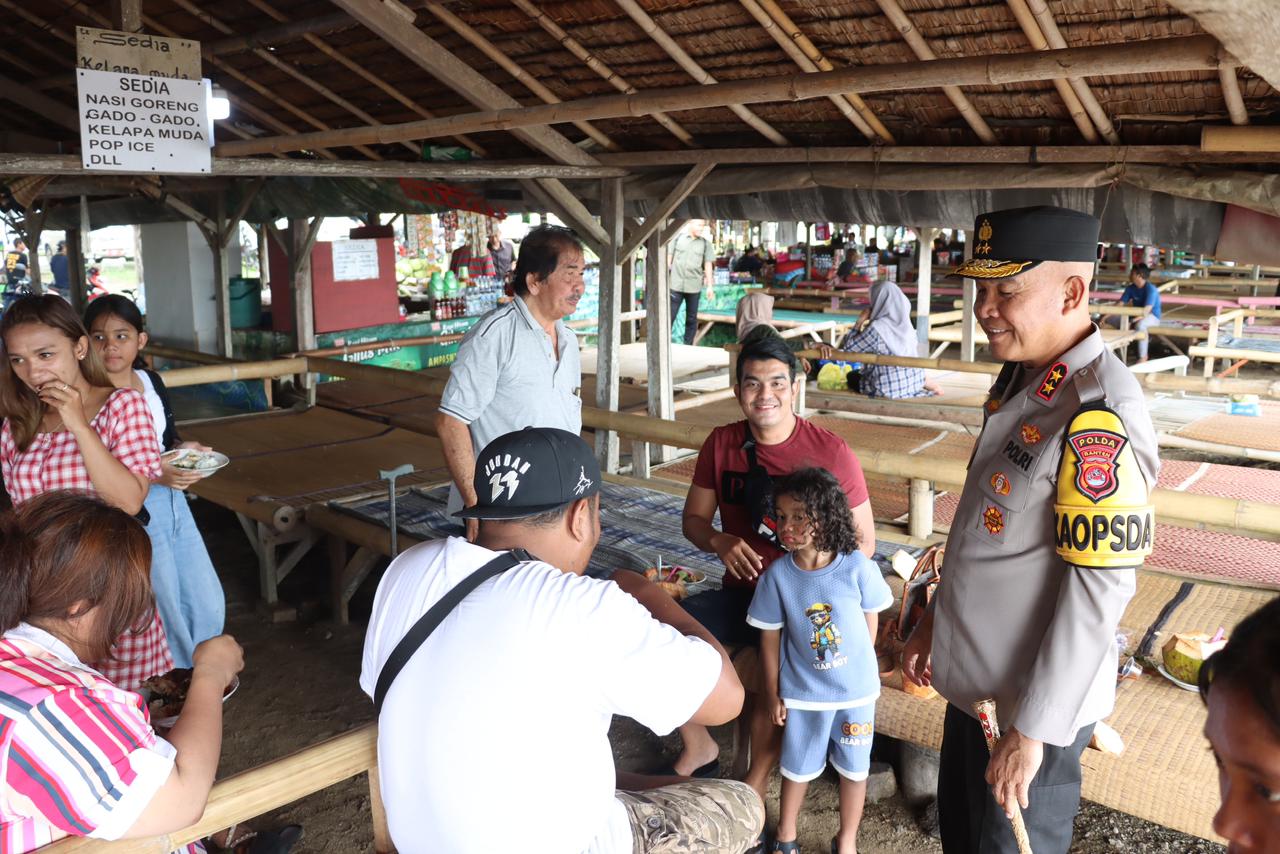 Setibanya sekitar pukul 14.00 WIB, Kapolda menyempatkan diri menyapa masyarakat dan wisatawan yang tengah berlibur di kawasan pantai. Interaksi dilakukan secara humanis sebagai bentuk pelayanan langsung aparatur kepolisian terhadap publik, khususnya pada momentum libur panjang pergantian tahun yang identik dengan tingginya mobilitas wisatawan.