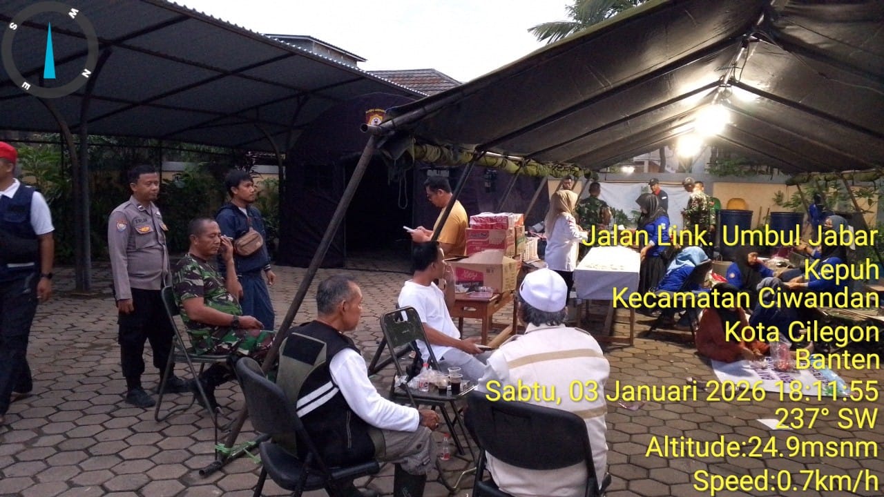 Cilegon - Dapur Umum Polres Cilegon memasak makanan untuk warga paska banjir di Kel. Kepuh, Ciwandan. Bantuan diberikan untuk 814 jiwa (223 KK) yang terdampak banjir pada Sabtu, (03/01/2026).