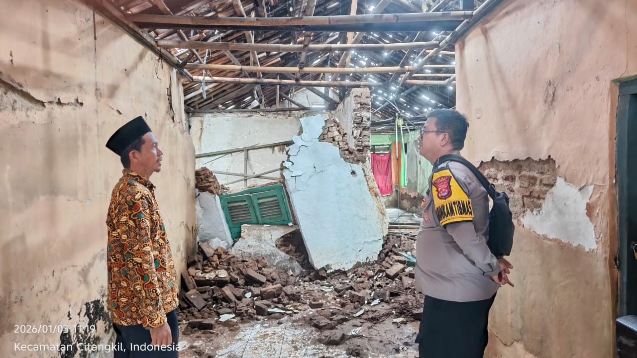 1. Rumah Sdr. Arman Maulana (yatim piatu, 1 jiwa) rubuh tembok kamar tengah. Kondisi rumah tua, tiang belum pakai sloof besi, genteng bocor. Air hujan masuk rumah saat hujan. Rugi materi Rp10.000.000,-, tidak ada korban jiwa. Sdr. Arman sementara tinggal dengan kakaknya.